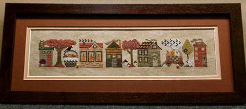 When I was looking for somthing Autumn to stitch, and not Halloween, I decided to do this for a shop model. I stitched the model on 28 Ct. Vintage Country Mocha using the recommended floss. Since it was so skinny, I decided to add mats when framing. I loved the finished result