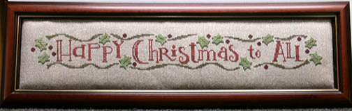 This is a pattern from Imaginating that was in my stash for some time. When I finished my autumn stitching, and Christmas was on the horizon, i found that I had the fabric and DMC floss so I was ready to go. The fabric was 28 ct. Beige Jobelan, and I used 3 Skeins of 3371 - the frame is a custom brown. Nothing hard and really a joy to stitch in one color