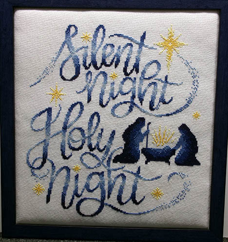 I love the row series by Bent Creek. They are great items to hang over door ways. Since Christmas is the celelbration of the Birth of Jesus, I have been looking at Nativity patterns. I found this row from Bent Creek as the year's new model - It was stitched on a new 32 Ct. Grey Sparkle Belfast Linen that has little stars scattered on the gray fabric, and used the recommended flosses. The frame is a custom ornate silver. I love the results!